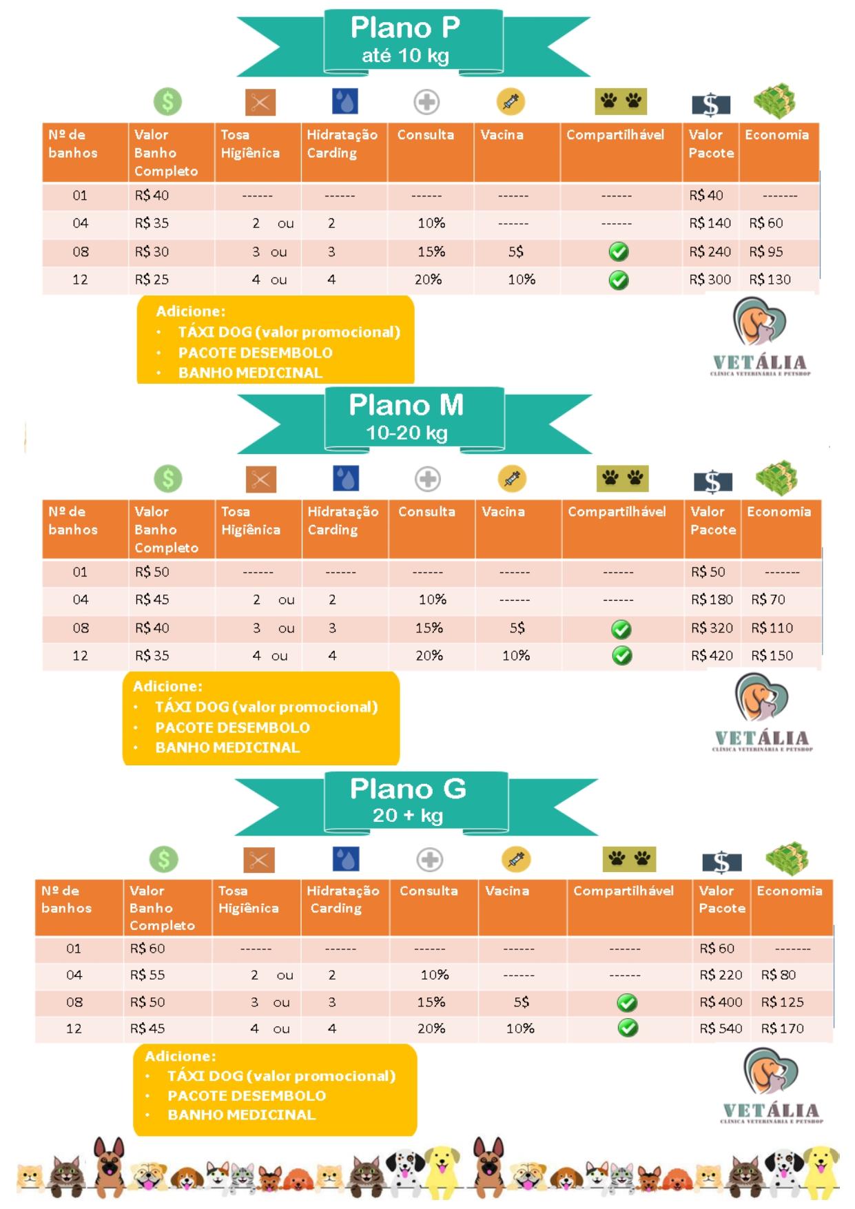 Trabalhamos com Planos de Banho de ótimo custo e benefício (e economia), confira na foto ao lado, qualquer dúvida entre em contato que teremos o prazer de te explicar direitinho!